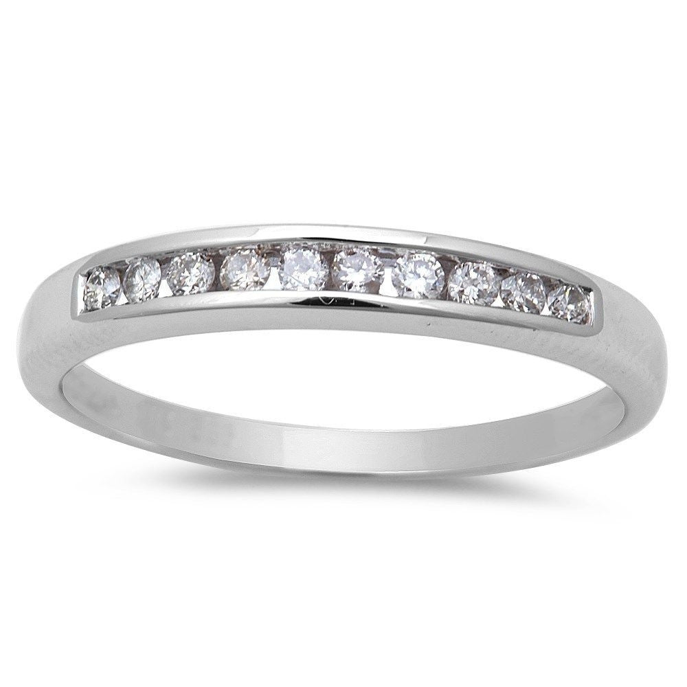 SPECIAL! .16ct Round Diamond Channel Set Wedding Band 14kt White gold size 6.5