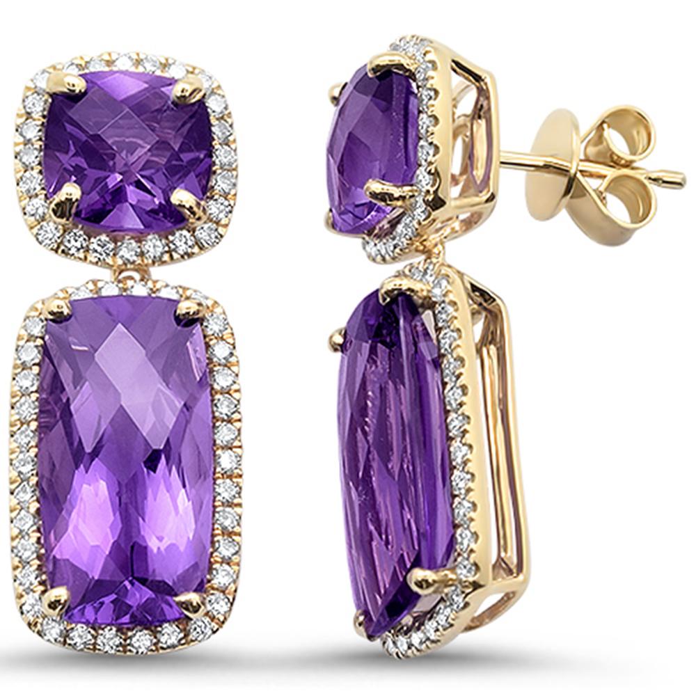 GEMSTONE CLOSEOUT! 14.33ct 10k Yellow Gold Cushion Amethyst & Diamond Designer Earrings